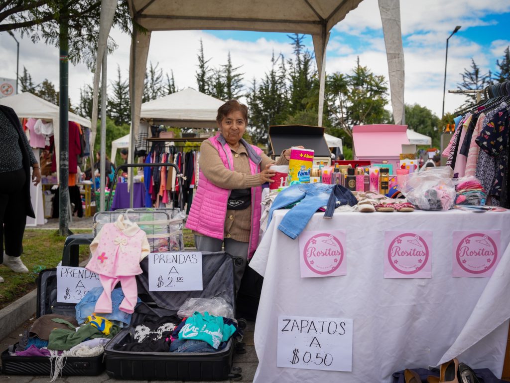 Uno de los testimonios destacados fue el de Rosita, emprendedora ambateña y propietaria de Rositas Ventas Online, quien señaló que en la feria se ofertaron prendas desde 50 centavos de dólar, lo que facilita el acceso a productos de calidad y genera oportunidades reales tanto para compradores como para vendedores.